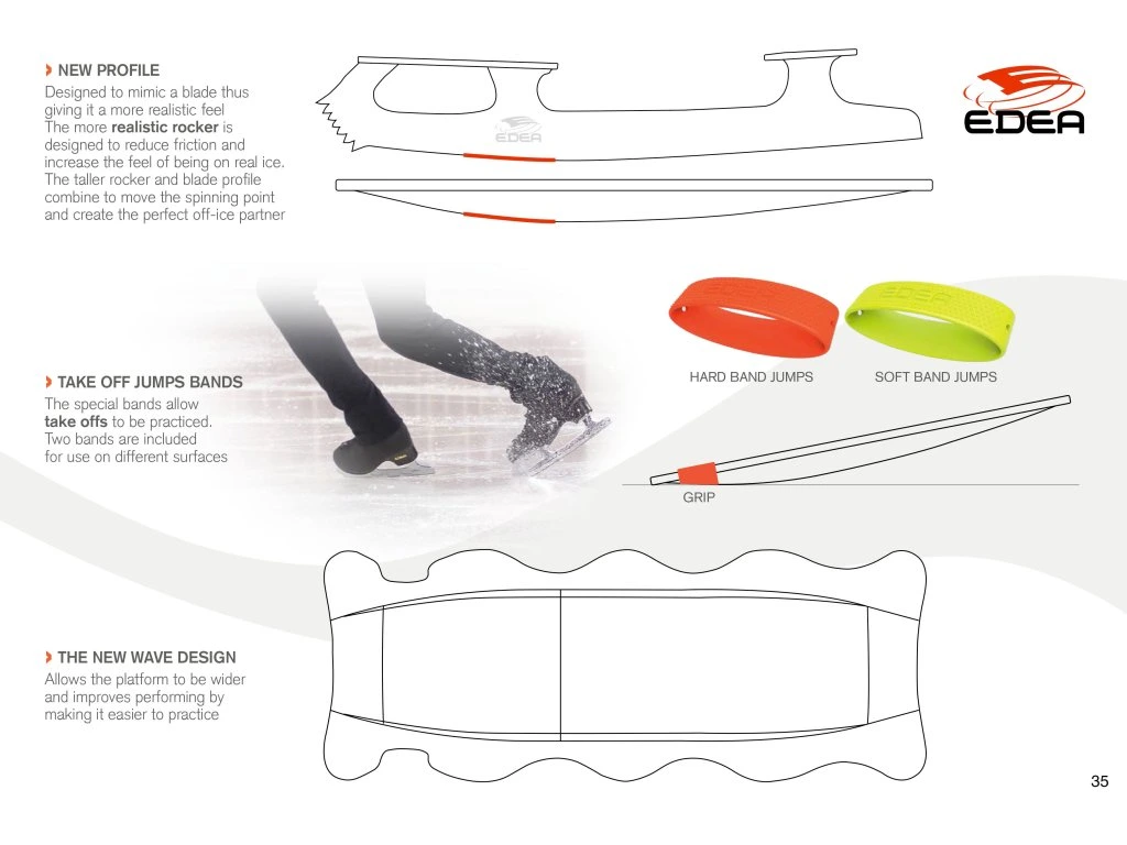 Nový revoluční E-spinner italského výrobce EDEA dodává tréninku nadčasový rozměr. Krasobruslaři nyní mohou trénovat skoky díky speciálnímu designu a integrovaným elastickým páskům.