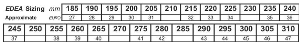 EDEA Skate Size Chart