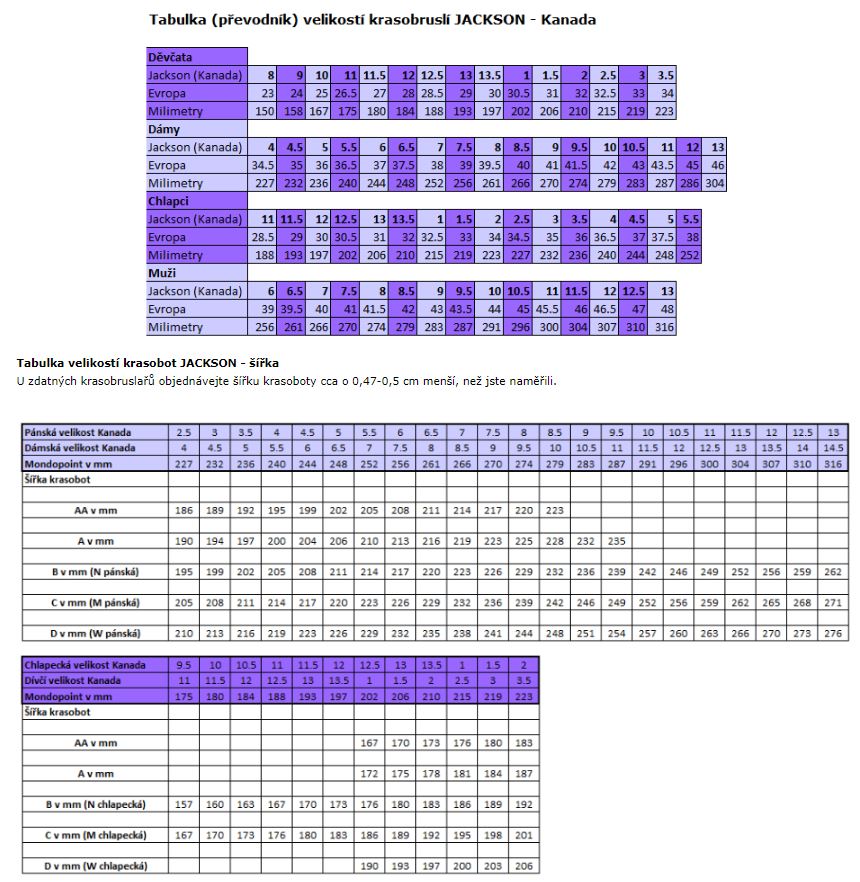Tabulka přepočtu koleček LINEA na boty EDEA, JACKSON, RISPORT