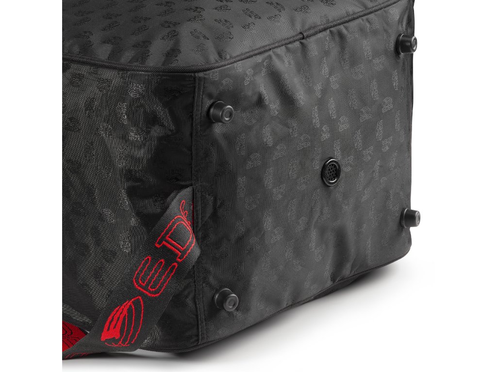 Na spodní části jsou 4 plastové špunty, na kterých taška stojí, a zabrání tak promočení dna od vlhké podlahy na zimním stadionu.